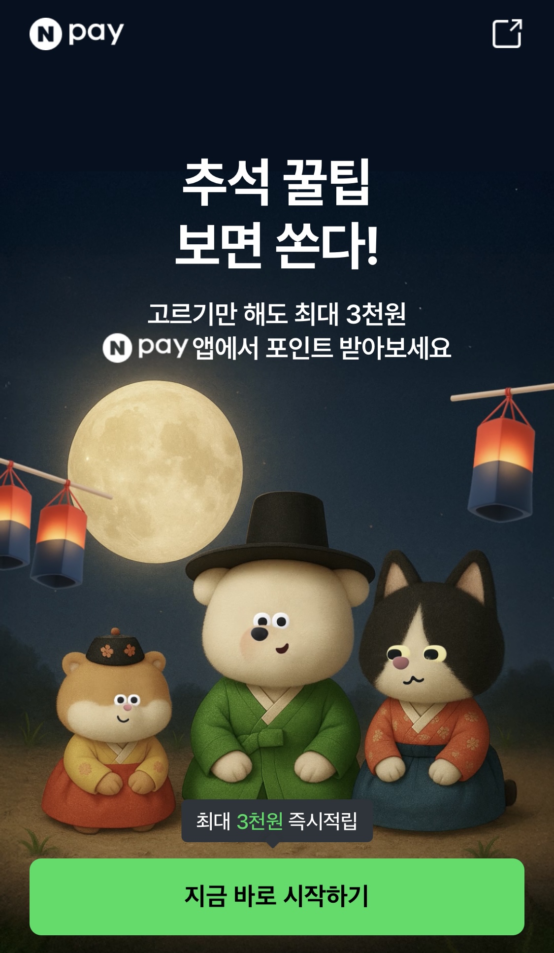- 추석 꿀팁 고르면 최대 3,000 NPay 포인트 즉시 랜덤 당첨!